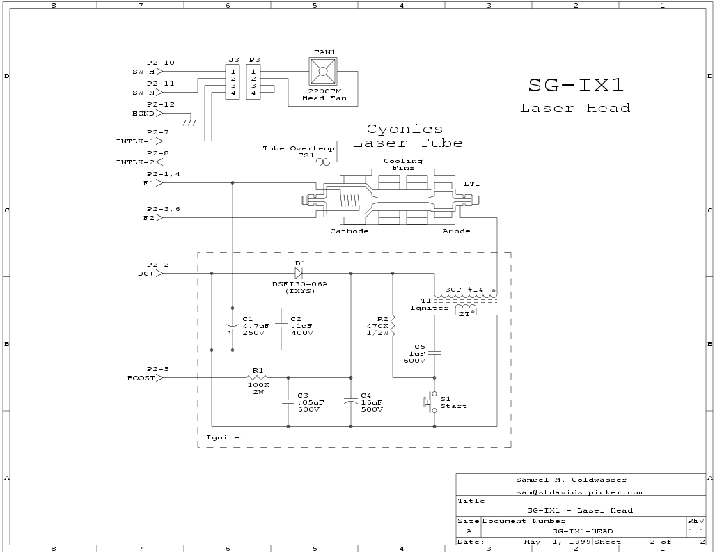 RLY1 also enables the power supply fan and the igniter circuitry. (The fan in the laser head runs as long as SW2 is in the ON position.)