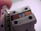 So, it would appear as though the laser was manufactured with a defective KTP. The YVO4 doesn't look that great either but at least the important central part isn't damaged. This was sort of a junky laser to begin with sloppy machining, wires falling off due to bad soldering, and just overall poor quality workmanship. The only outward sign of the cracked KTP was a misshapened beam. But once the laser was disassembled, the amazing part is how it actually worked in the first place!