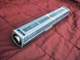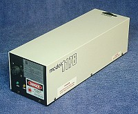 This is also a rather large HeNe laser but not nearly the size of the SP-125. It is self contained with an internal brick type power supply. Rated output power is around 35 mW (CDRH max: 60 mW). The beam cuts through T-120 video tape like butter when focused. Dimensions are: 42-1/2"(L), 5-7/8"(W), 4-9/16"(H) including foot projection. Weight is approximately 20 lbs.