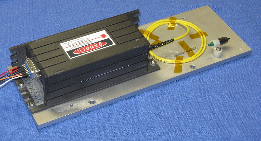 If anyone would be interested in a challenge, this unit may be available at a very reasonable price. The fiber gain medium alone should be valuable in constructing a fiber laser of your own. Sorry, I don't know its specific composition except that it operates at a fundamental wavelength of 1,280 nm. Contact me and make an offer if interested. But you don't get the feet. :-)
