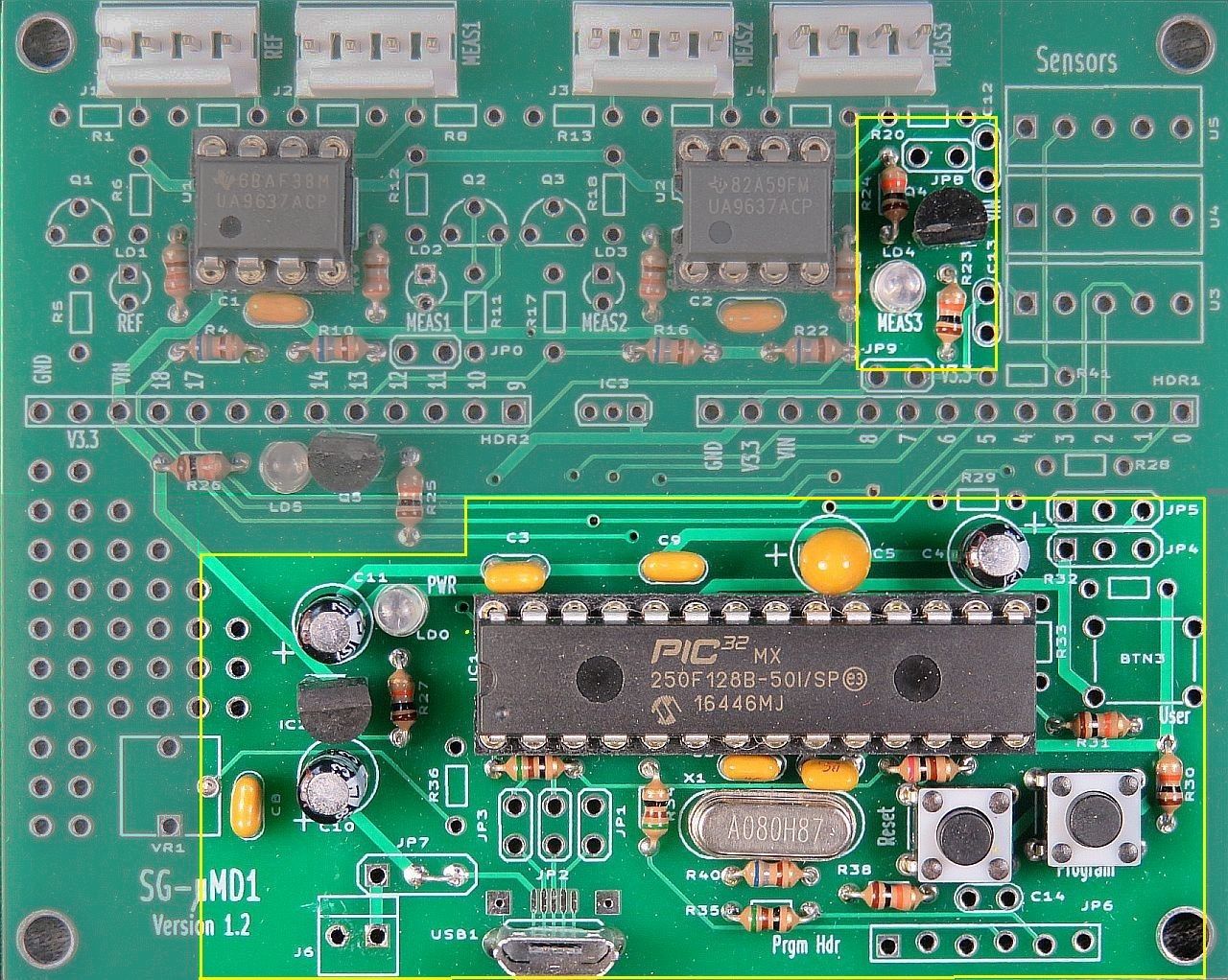The schematic for the SG-µMD1 Version 1.2 PCB may be found at